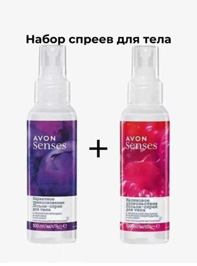 AVON/Эйвон Освежающий лосьон-спрей для тела Senses (Сенсес) "Малиновое удовольствие", 2шт по 100 мл