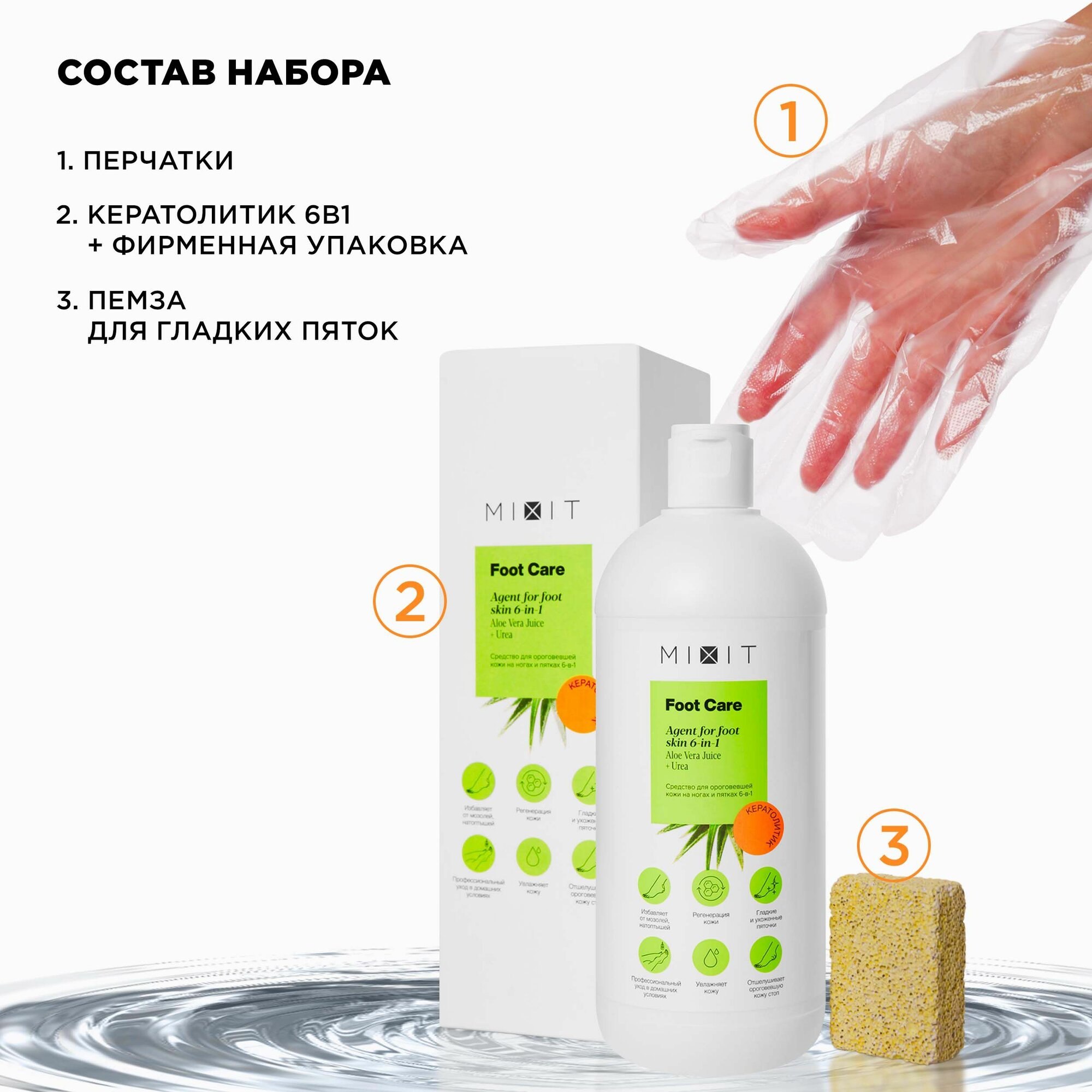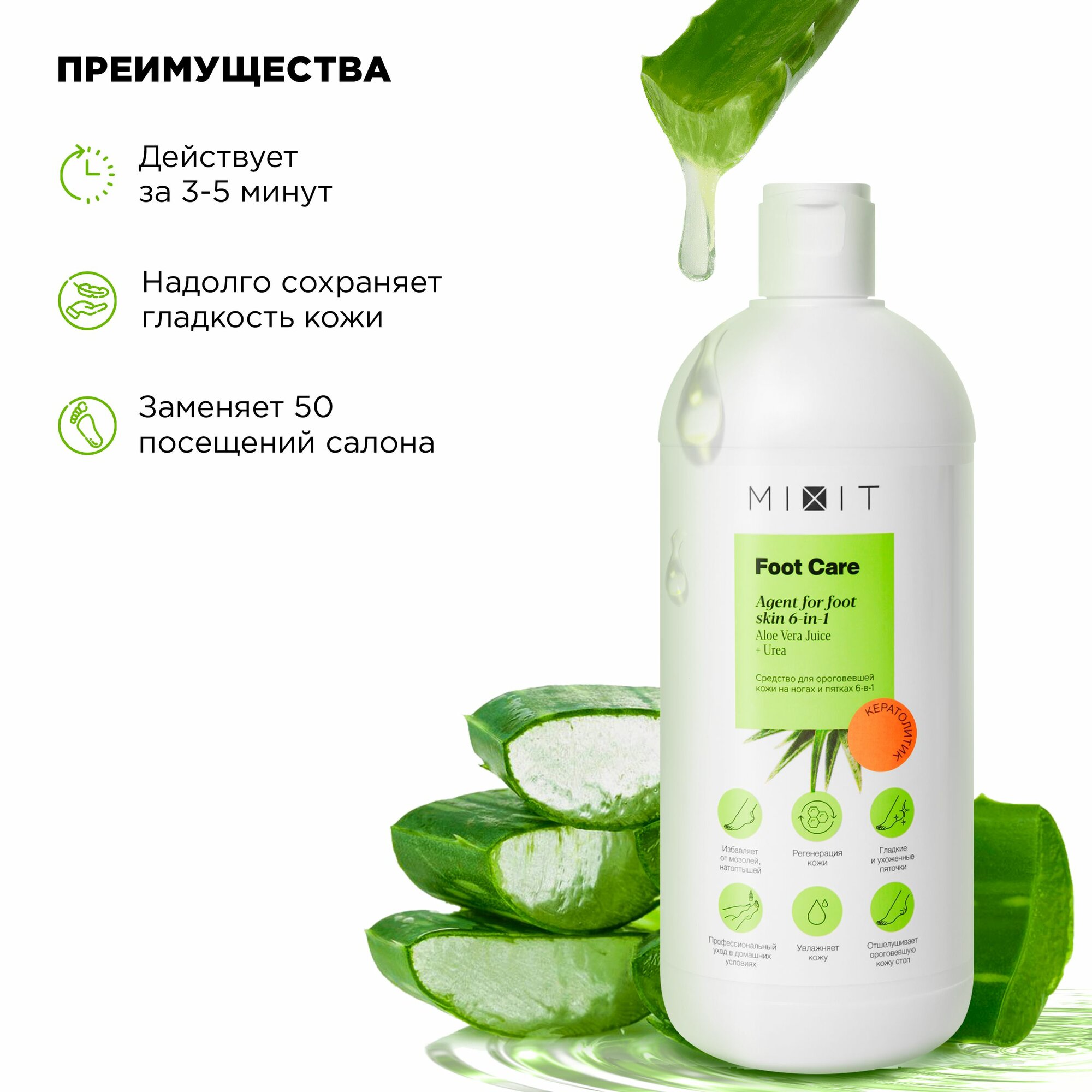 Отшелушивающий кератолитик для пяток ног и педикюра против трещин и мозолей с мочевиной и алоэ вера MIXIT FOOT CARE, 2 шт. 1000 мл