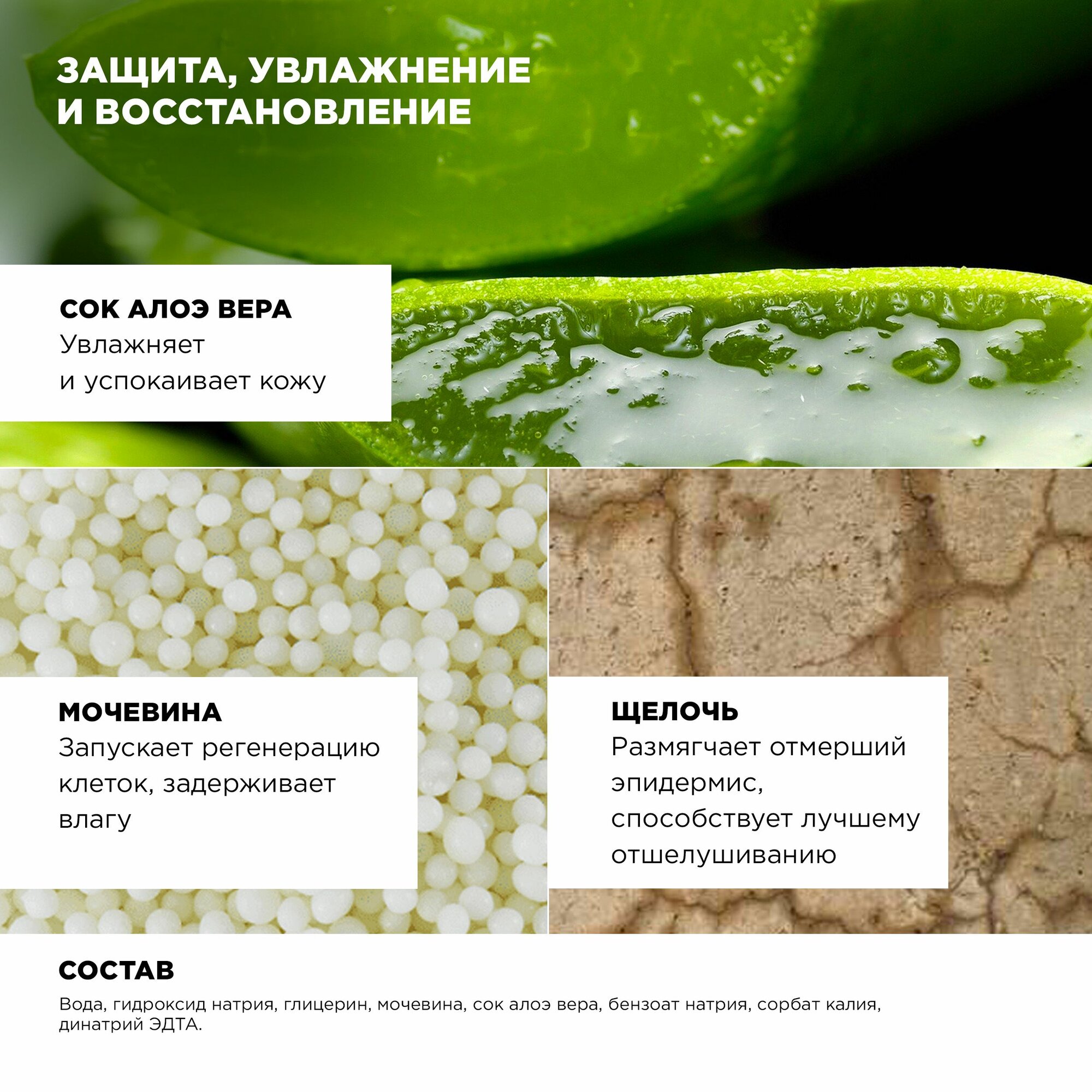 | Состав | Вода, гидроксид натрия, глицерин, мочевина, сок алоэ вера, бензоат натрия, сорбат калия, динатрий ЭДТА. |