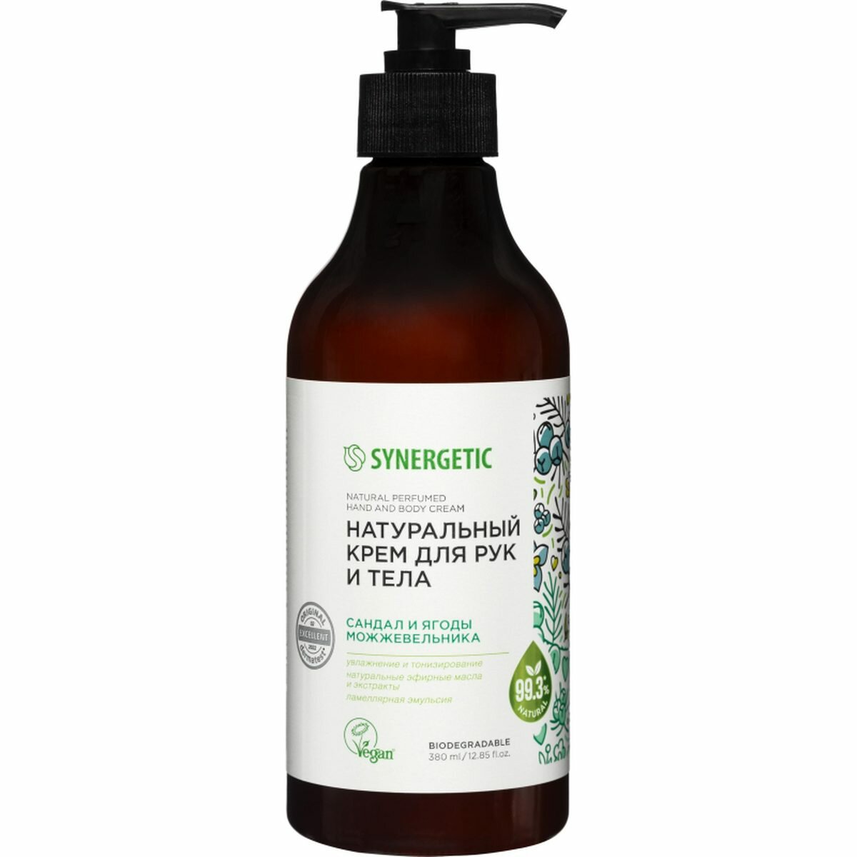 Натуральный крем SYNERGETIC для рук и тела Сандал и ягоды можжевельника 380 мл
