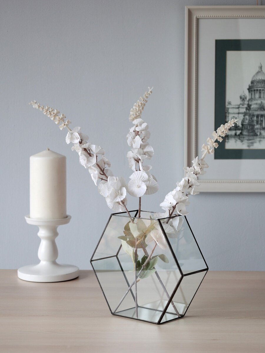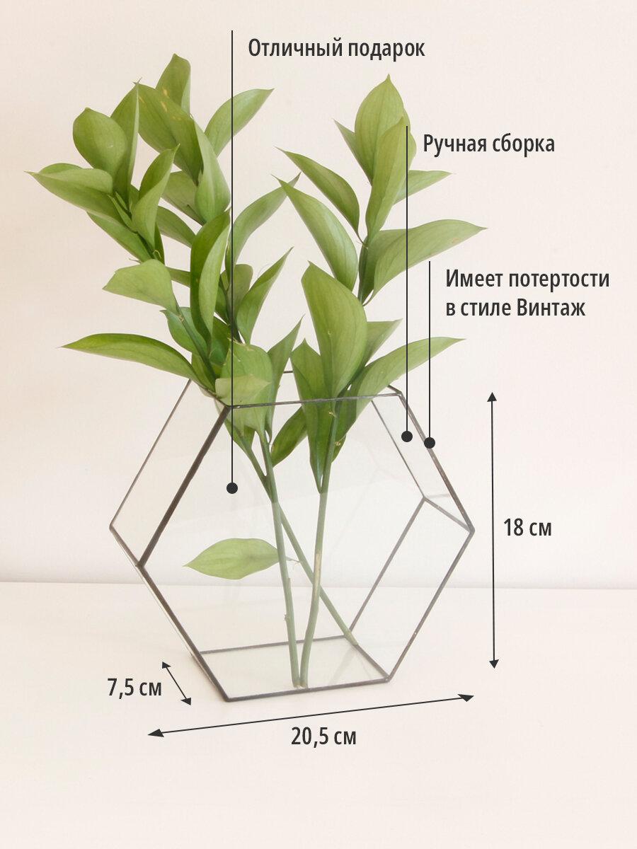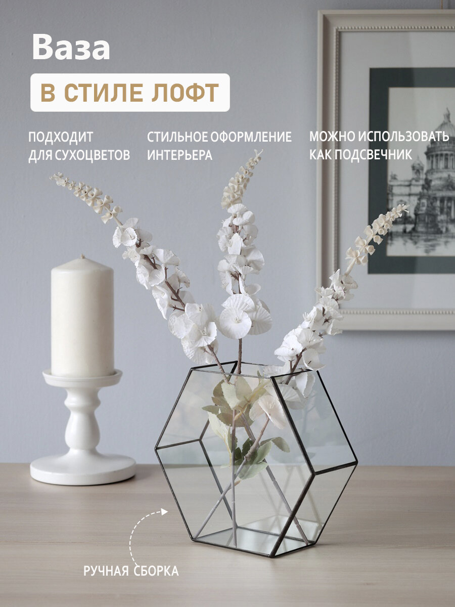 Прозрачная настольная ваза Bogacho Белла из стекла на декоративной ножке для букетов, высоких цветов и сухоцветов