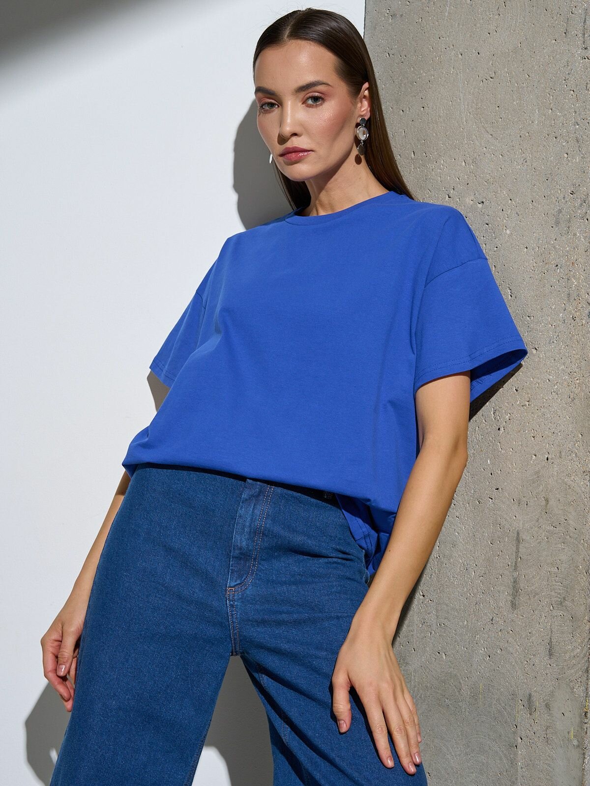 Футболка оверсайз хлопок Uzcotton однотонная базовая свободная плотная Синий44-46\S