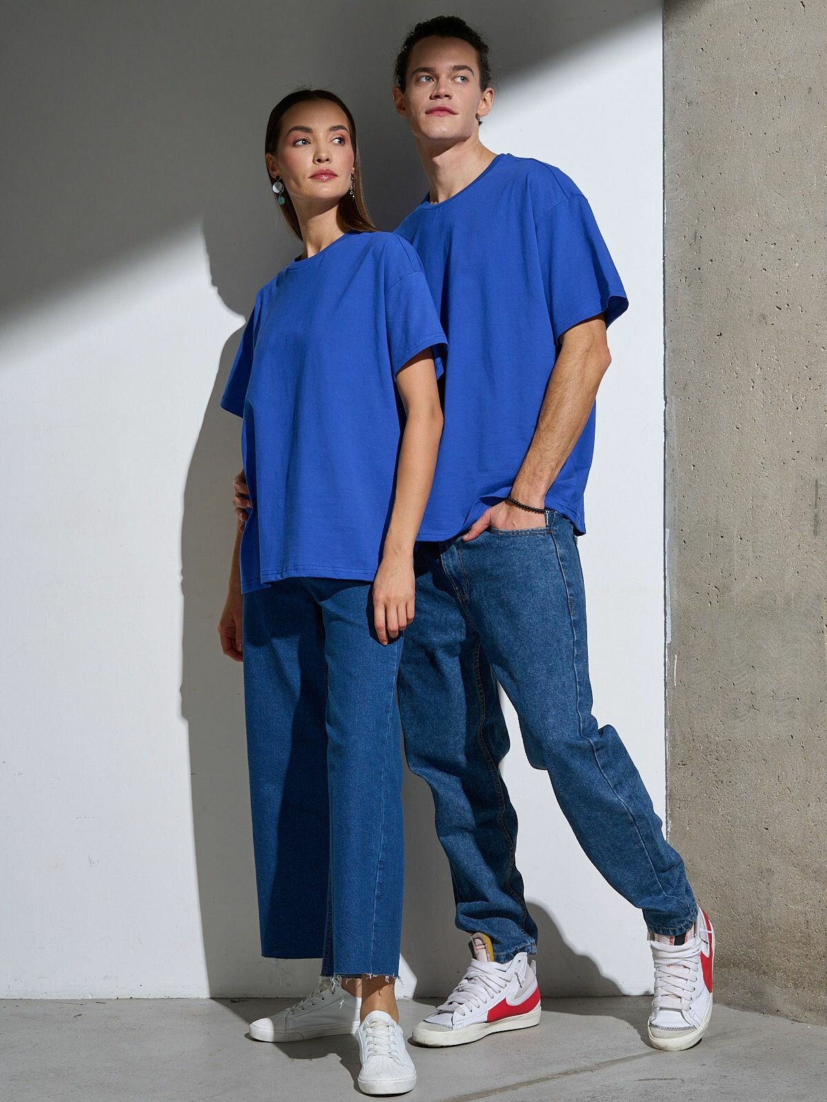 Футболка оверсайз хлопок Uzcotton однотонная базовая свободная плотная Джинс44-46\S