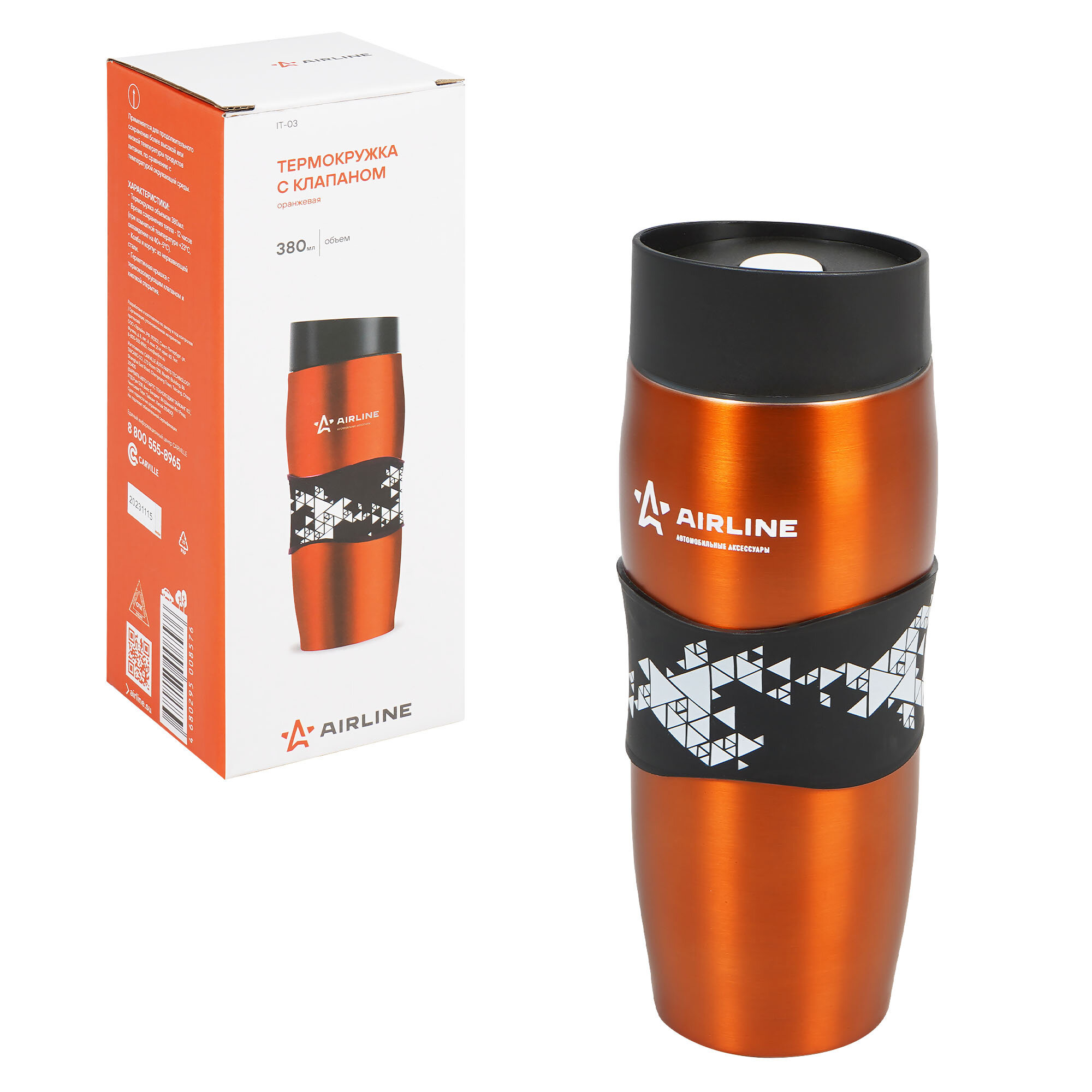 AIRLINE IT-01 Термокружка c клапаном, 380 мл., черная 1шт