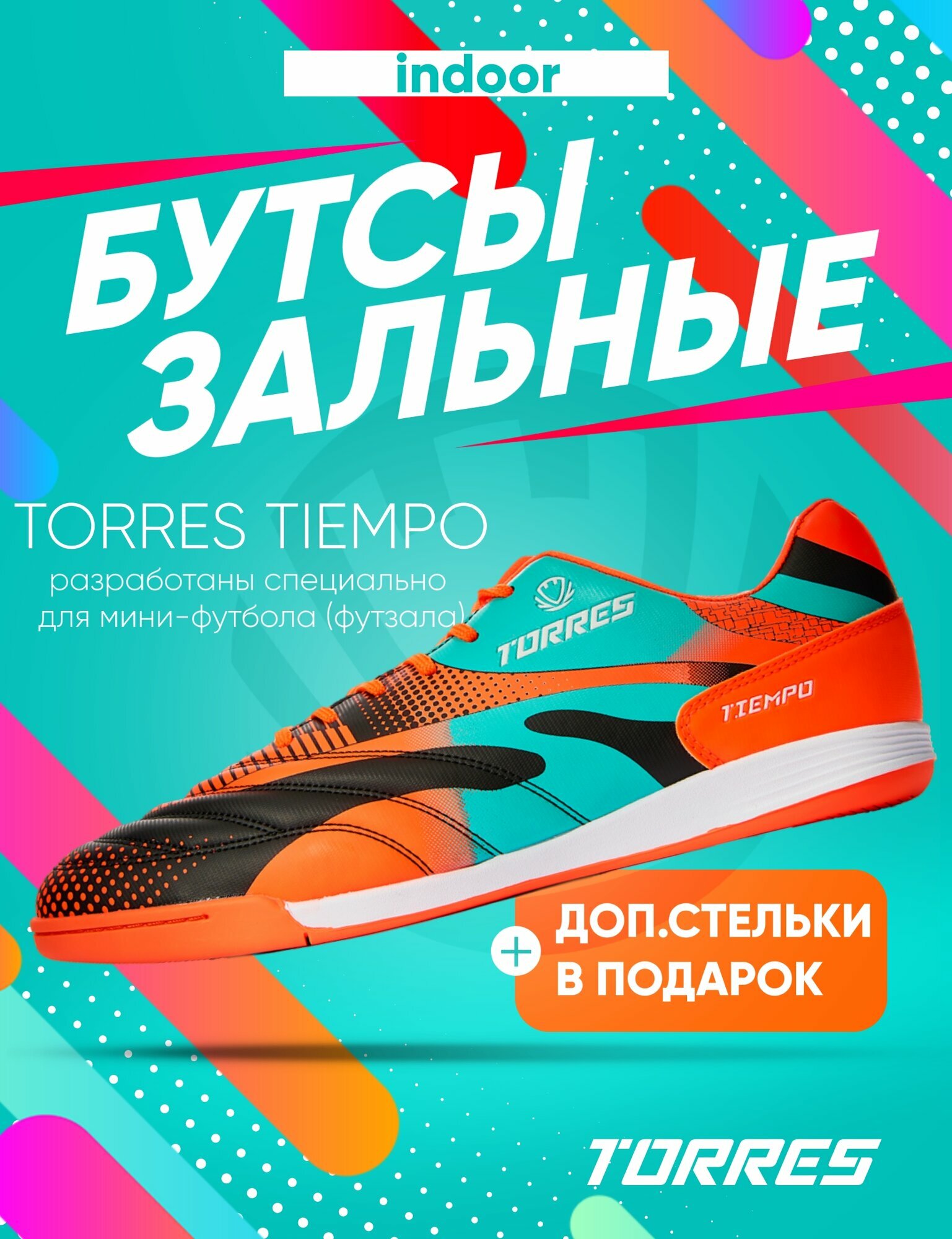 Бутсы зальные TORRES TIEMPO, TS134236-417-43, р.43, оранжево-бирюзовый