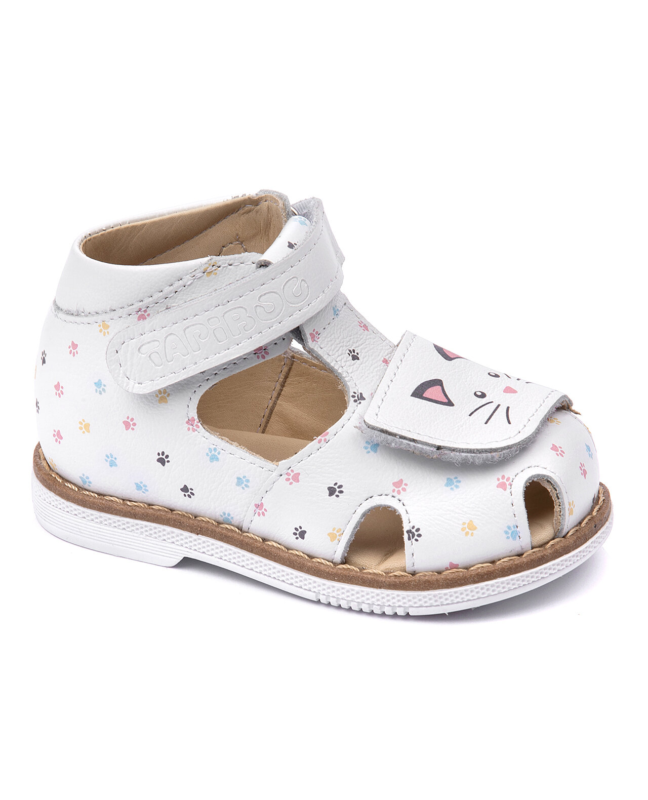 Сандалии детские 26021 кожа, ландыш белый/лапки, р18