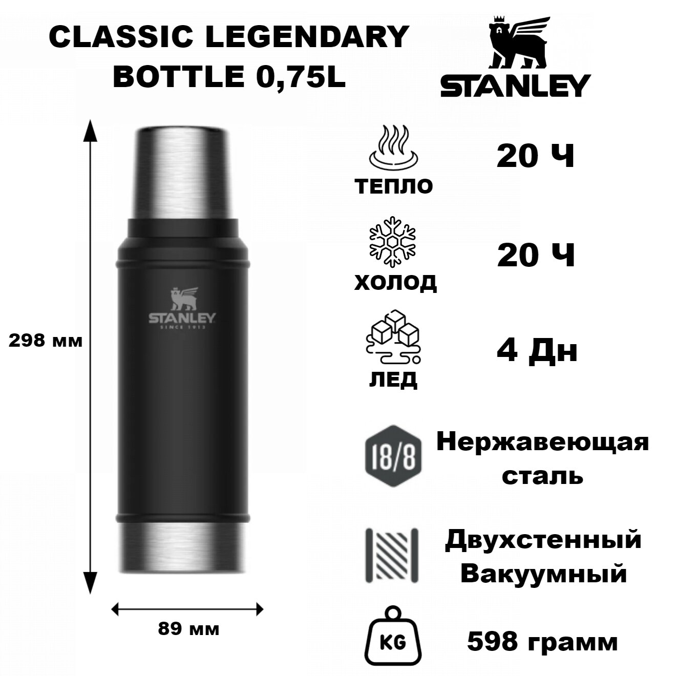 Термос Stanley Classic 0,75 L черный .