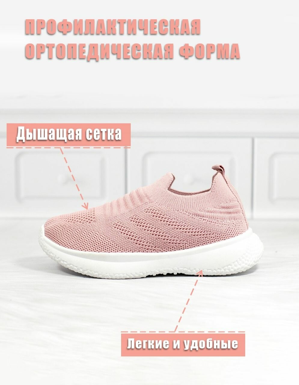 Слипоны розовые с белой подошвой для девочек и мальчиков "Яркое детство" размер 26