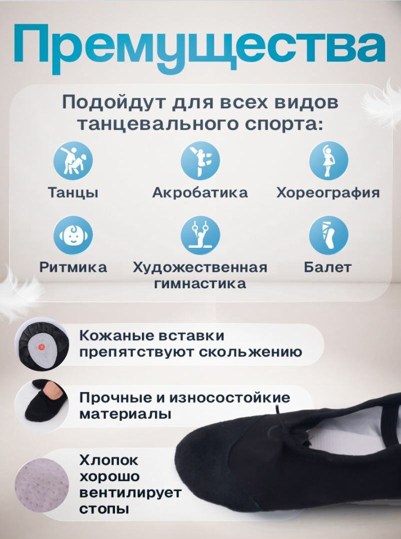 балетки (чешки) для танцев и гимнастики черные 34 р. (длинна стопы 21,5см)