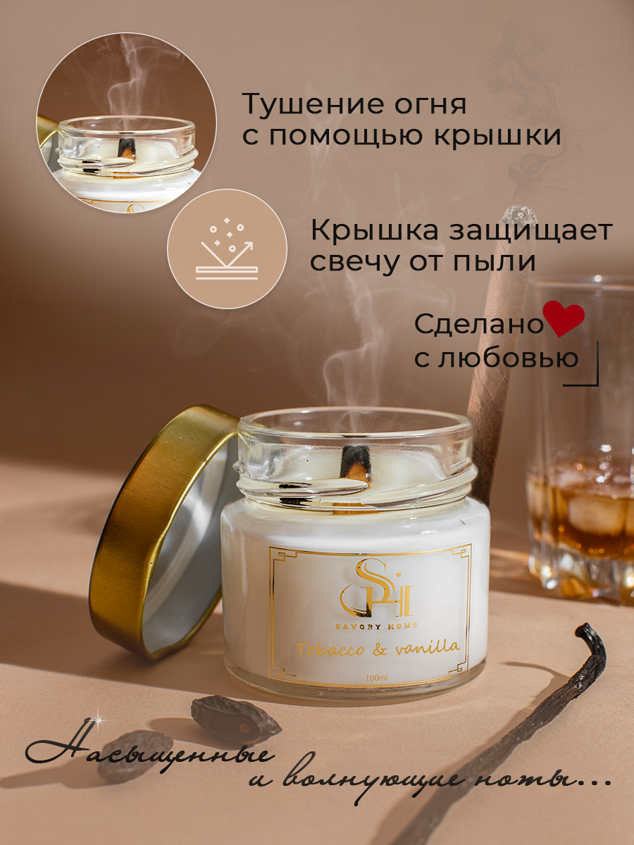 СохранитьСвеча ароматическая " Табак и ваниль " 100мл, Savory Home интересное: