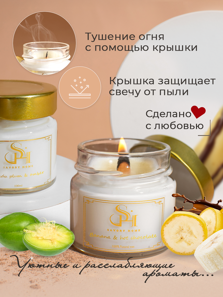 Свеча ароматическая "Банан и горячий шоколад" 100мл, Savory Home