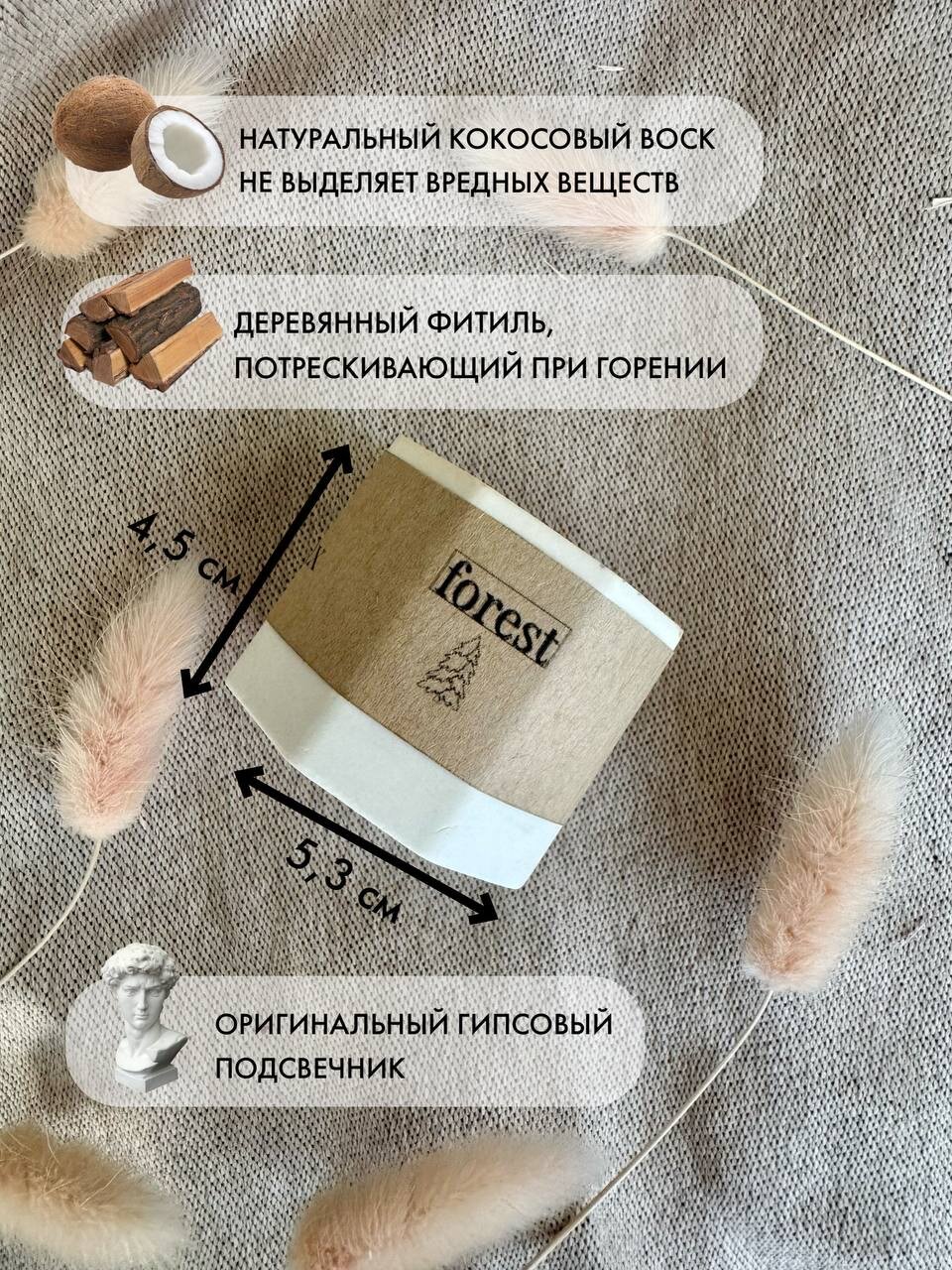 СохранитьСвеча AROMALAND Хвойный Лес, с деревянным фитилём, в гипсовом подсвечнике, 50 мл интересное: