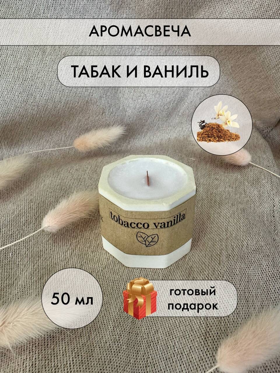 Свеча ароматическая Табак и ваниль с деревянным фитилем