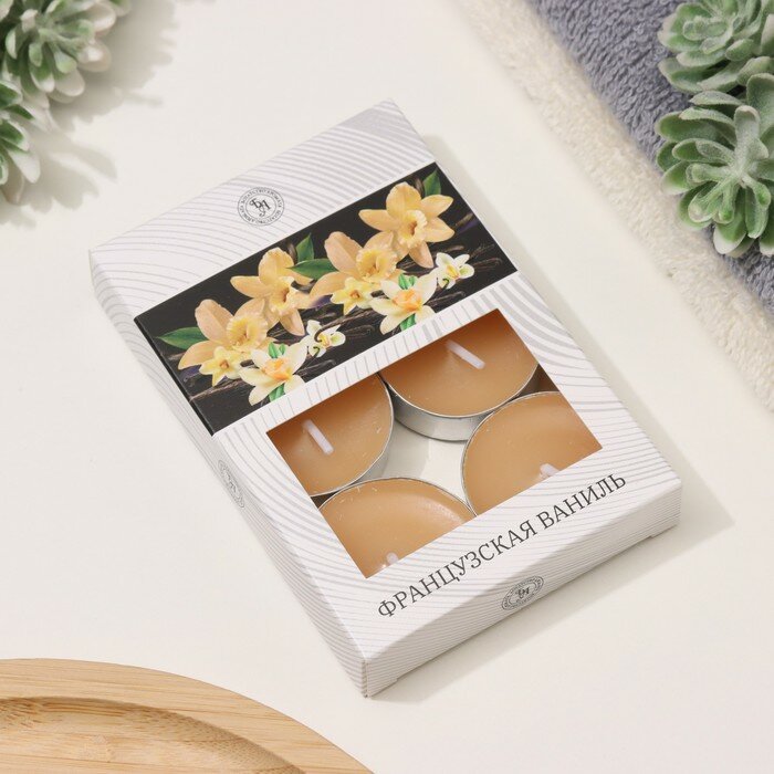 Свечи чайные ароматические "Французская ваниль" 6 шт горение 4 часа, размер 1 шт 3,75*3,75*1,14 см, цвет - кофе с молоком