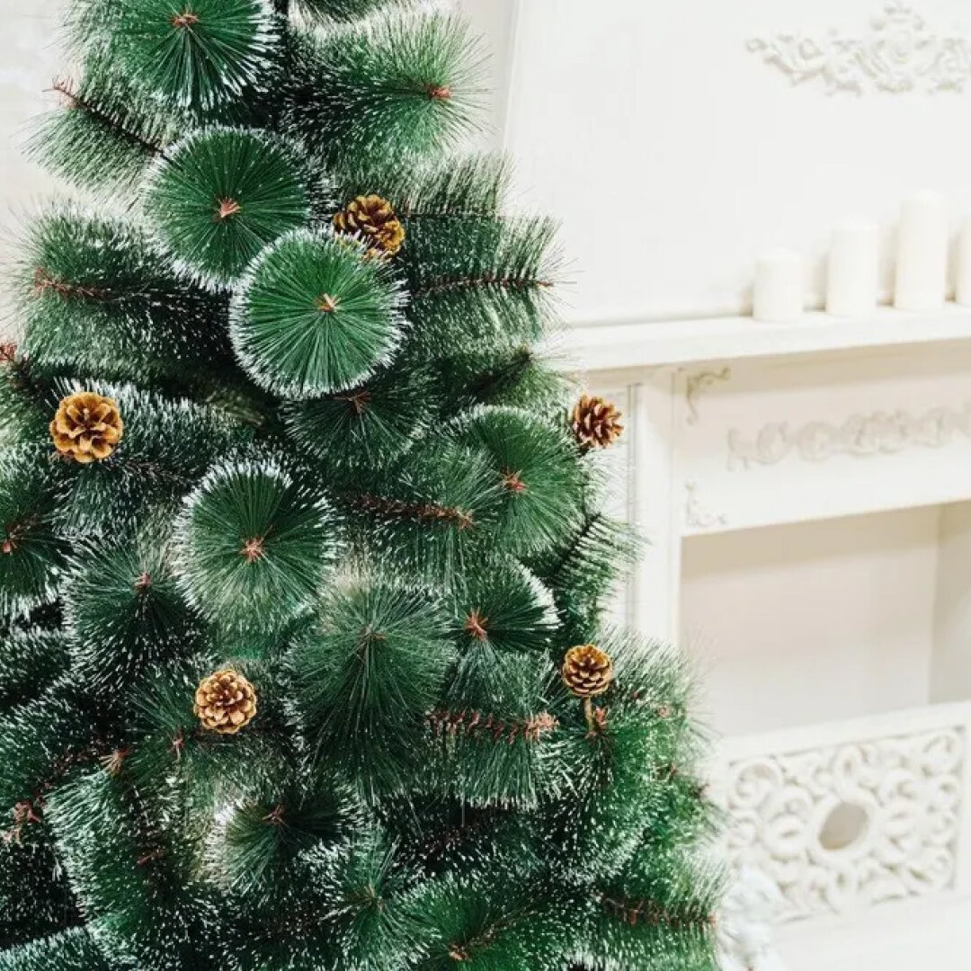 Елка искусственная с шишками и инеем, зеленая, высота 150 см