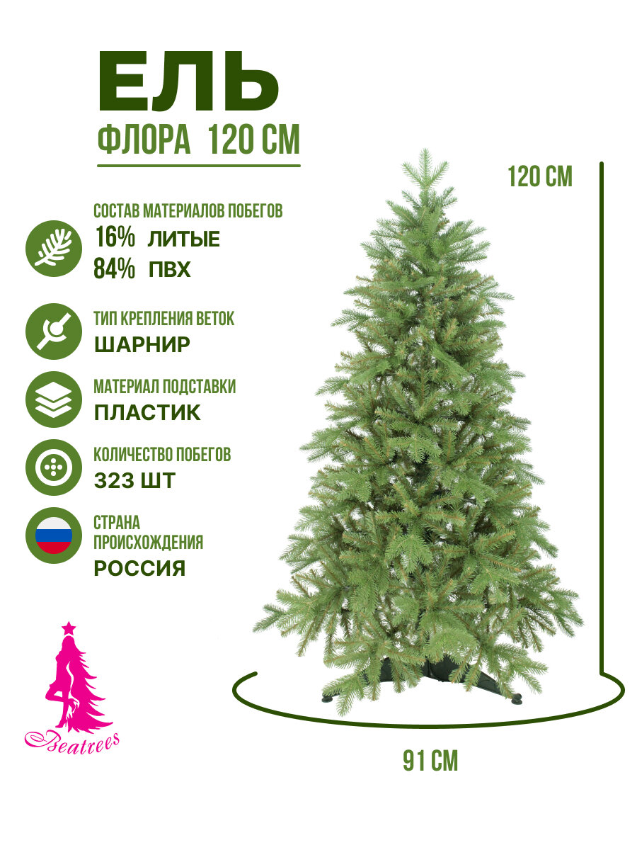 Ель BEATREES Флора зеленая 1,2 м интересное: