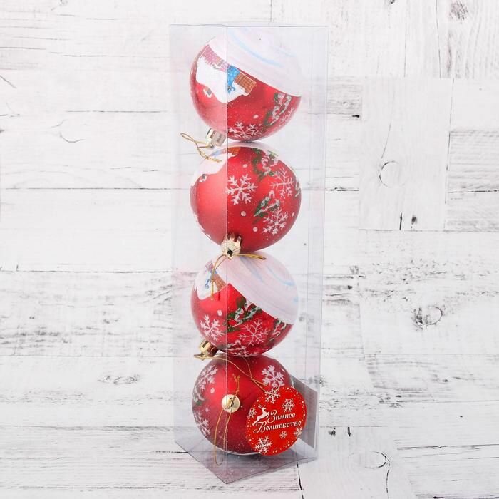 Набор шаров пластик d-7 см, 4 шт "Избушка" красный 1332602