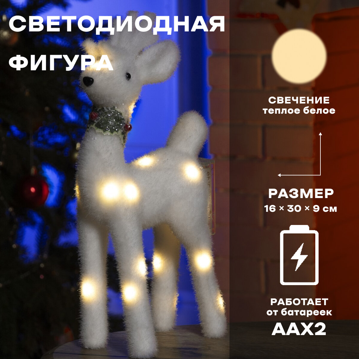 Светодиодная фигура «Олень» 16 × 30 × 9 см, флок, батарейки CR2032 (не в комплекте), свечение тёплое белое интересное: