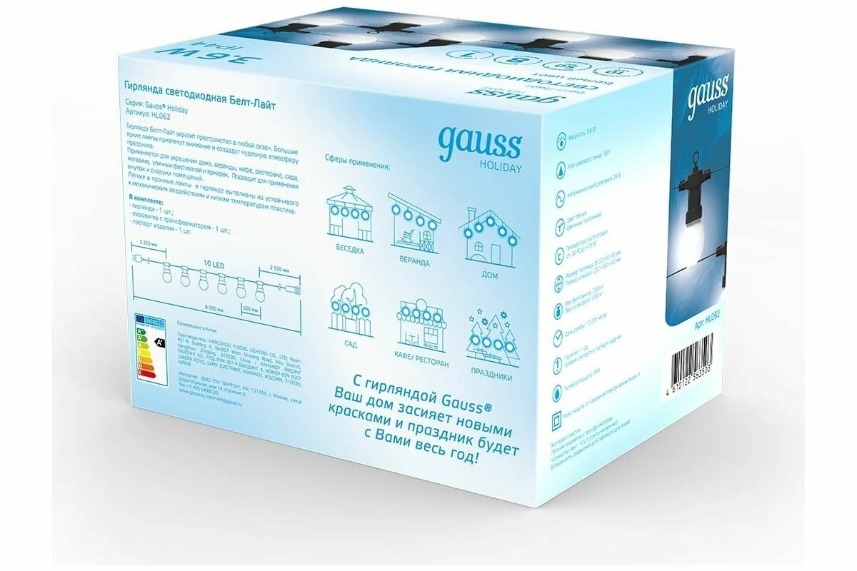 Ниже Вы можете прочитать отзывы на Светодиодная гирлянда Gauss Белт Лайт, серия Holiday, 10 ламп, 7.7 м, IP44, белый, 1/6 HL062, ознакомится с подробными характеристиками, посмотреть интересные обзоры и фотографии на Светодиодная гирлянда Gauss Белт Лайт, серия Holiday, 10 ламп, 7.7 м, IP44, белый, 1/6 HL062.