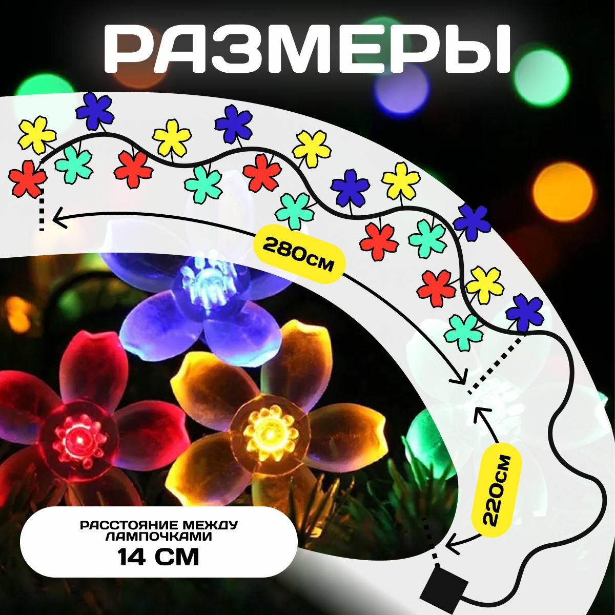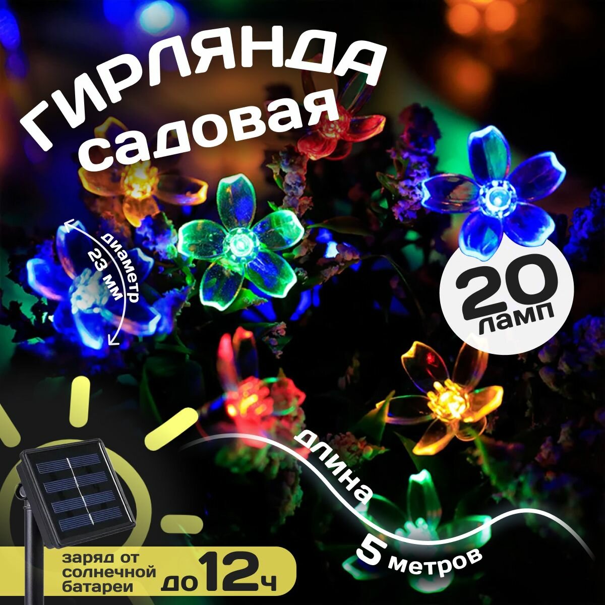 Купить Гирлянда на солнечной батарее уличная, цветы - разноцветное свечение