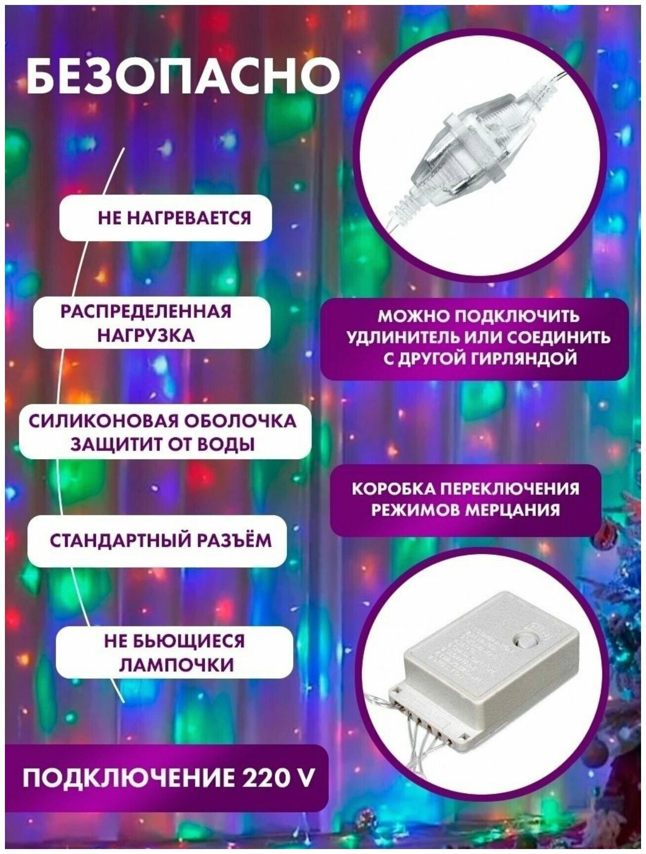 Гирлянда электрическая интерьерная 3х2 метр /320 LED/Светодиодная штора- занавес/ Свет Цветной/Серия: Лапландия