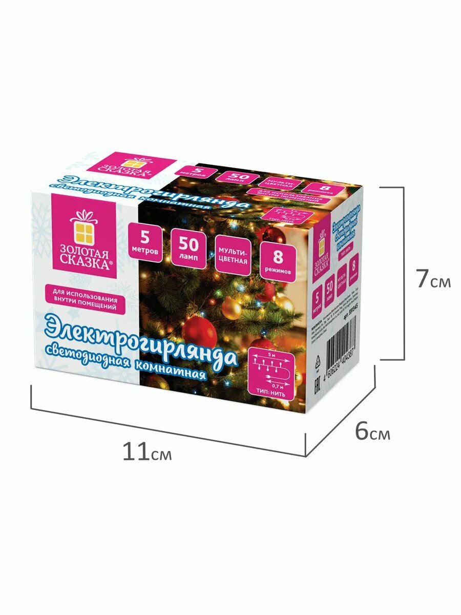 Электрогирлянда-нить комнатная Золотая сказка Стандарт, 5 м, 50 LED, теплый белый свет, 220 V, контроллер
