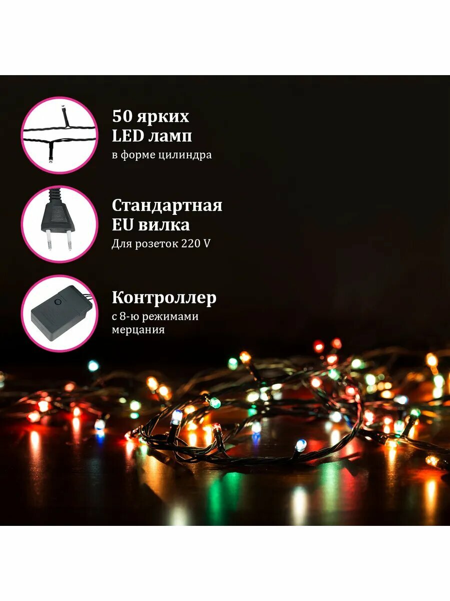 Купить Электрогирлянда-нить комнатная "Стандарт" 5 м, 50 LED, муль
