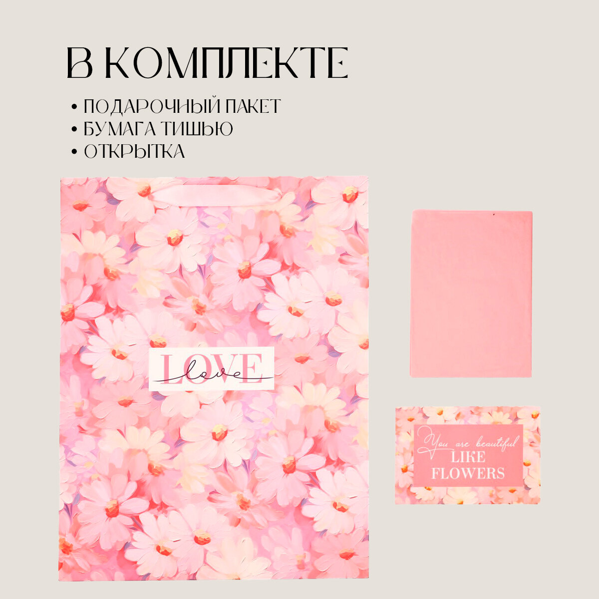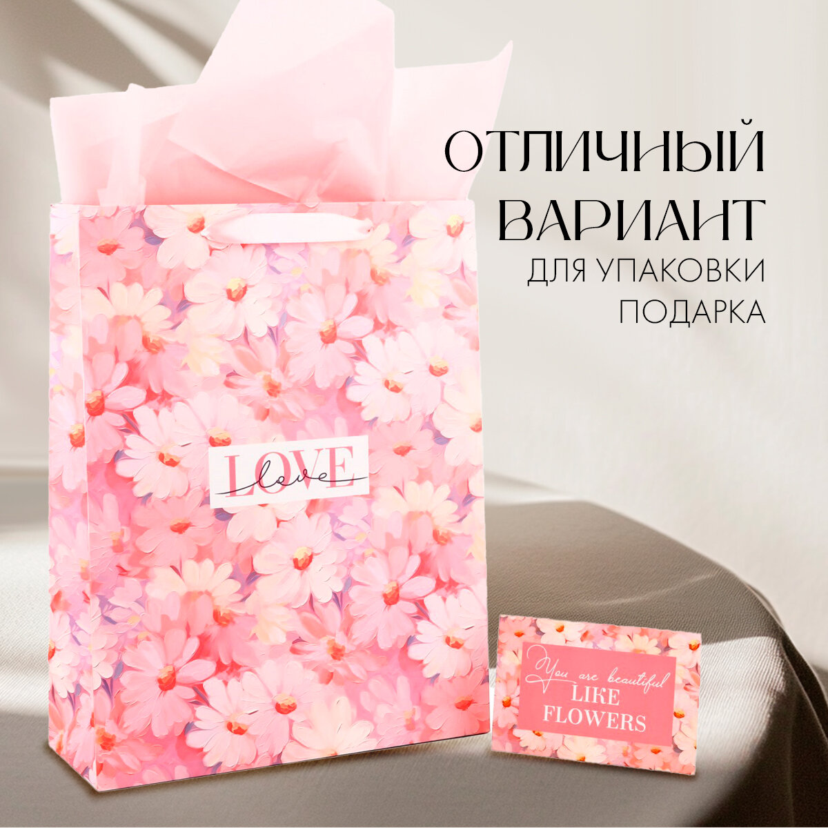 СохранитьПакет подарочный ламинированный L, 40 × 31 × 11,5, двухсторонний «Цветы», с тишью и открыткой интересное: