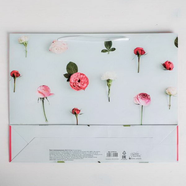 Пакет подарочный ламинированный L, 40 × 31 × 11,5, двухсторонний «Цветы», с тишью и открыткой