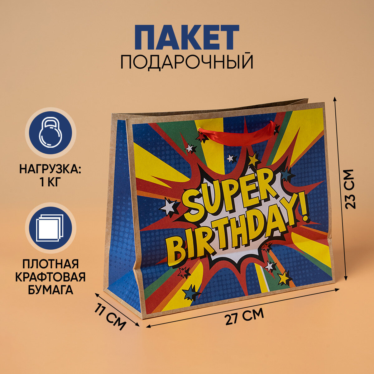Ниже Вы можете прочитать отзывы на Пакет крафтовый горизонтальный Super birthday, ML 27 × 23 × 11.5 см (1шт.), ознакомится с подробными характеристиками, посмотреть интересные обзоры и фотографии на Пакет крафтовый горизонтальный Super birthday, ML 27 × 23 × 11.5 см (1шт.).