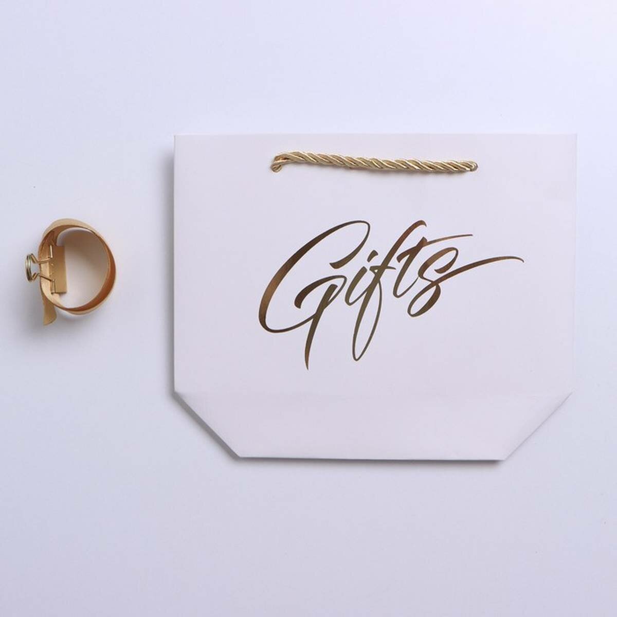 Пакет подарочный «Gifts», 14 х 17 х 7 см, белый, лента в комплекте