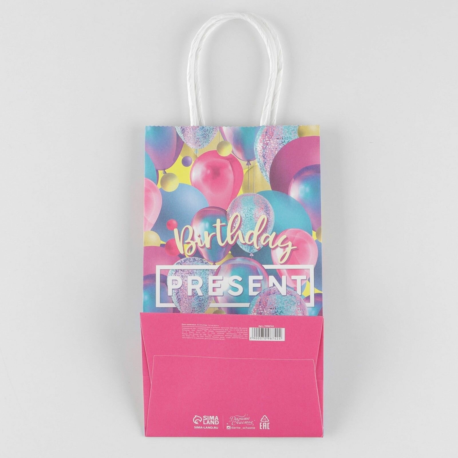 Пакет подарочный крафтовый, упаковка, «С днём рождения», 22 х 25 х 12 см