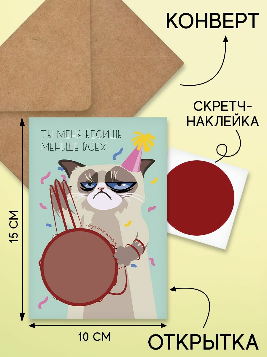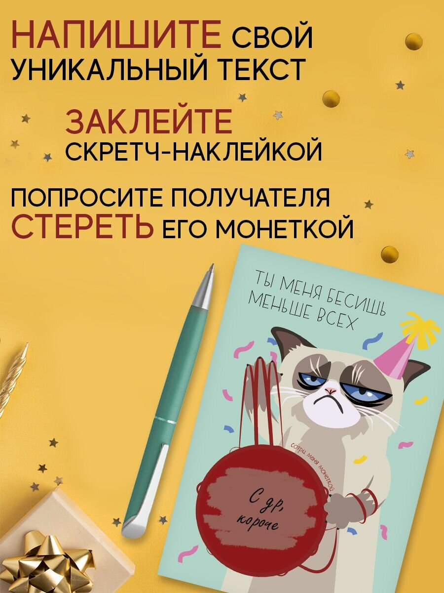 Поздравительная скретч открытка прикол с днем рождения в конверте
