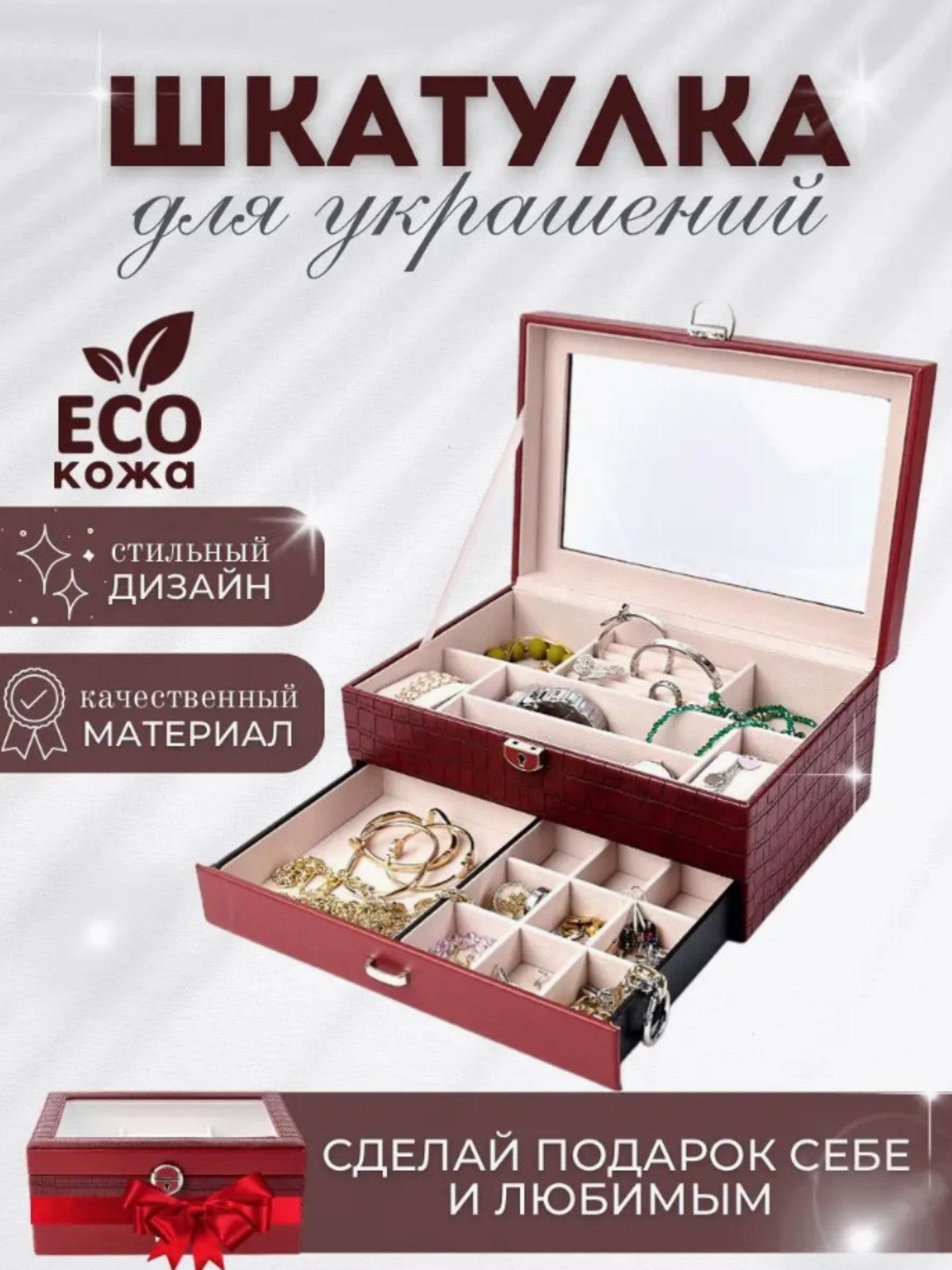 СохранитьШкатулка для украшений и часов SAVEZ бордовая интересное: