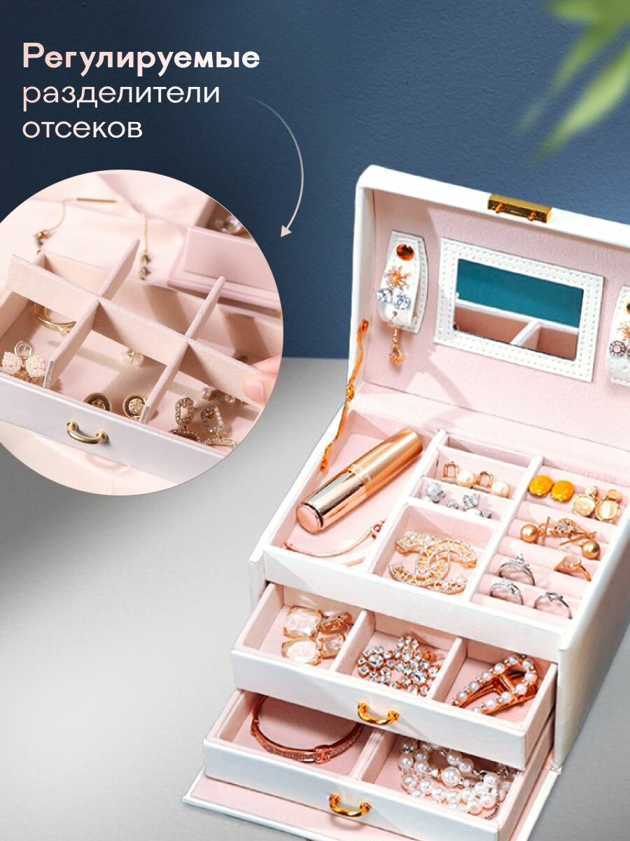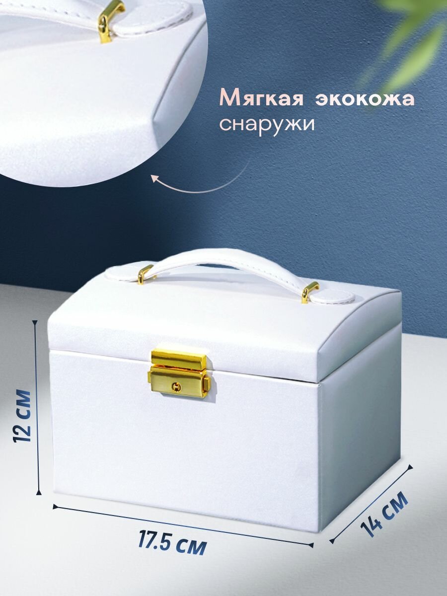 Сундук шкатулка для украшений органайзер для колец Classmark хранение бижутерии на замке из дерева и экокожи, БЕЛАЯ интересное: