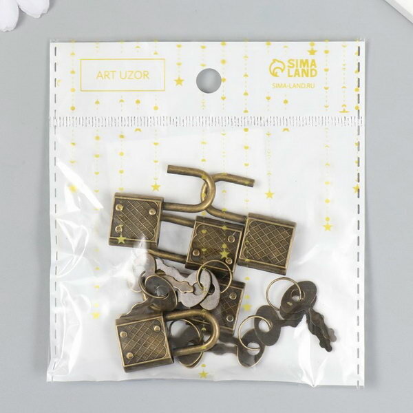 Купить Замочек с ключиком для шкатулки металл набор 5 шт С286 бронза 3.1х1.7 см