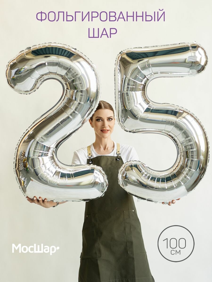 Фольгированный воздушный шар цифра 25 двадцать пять серебро 100см - Мосшар