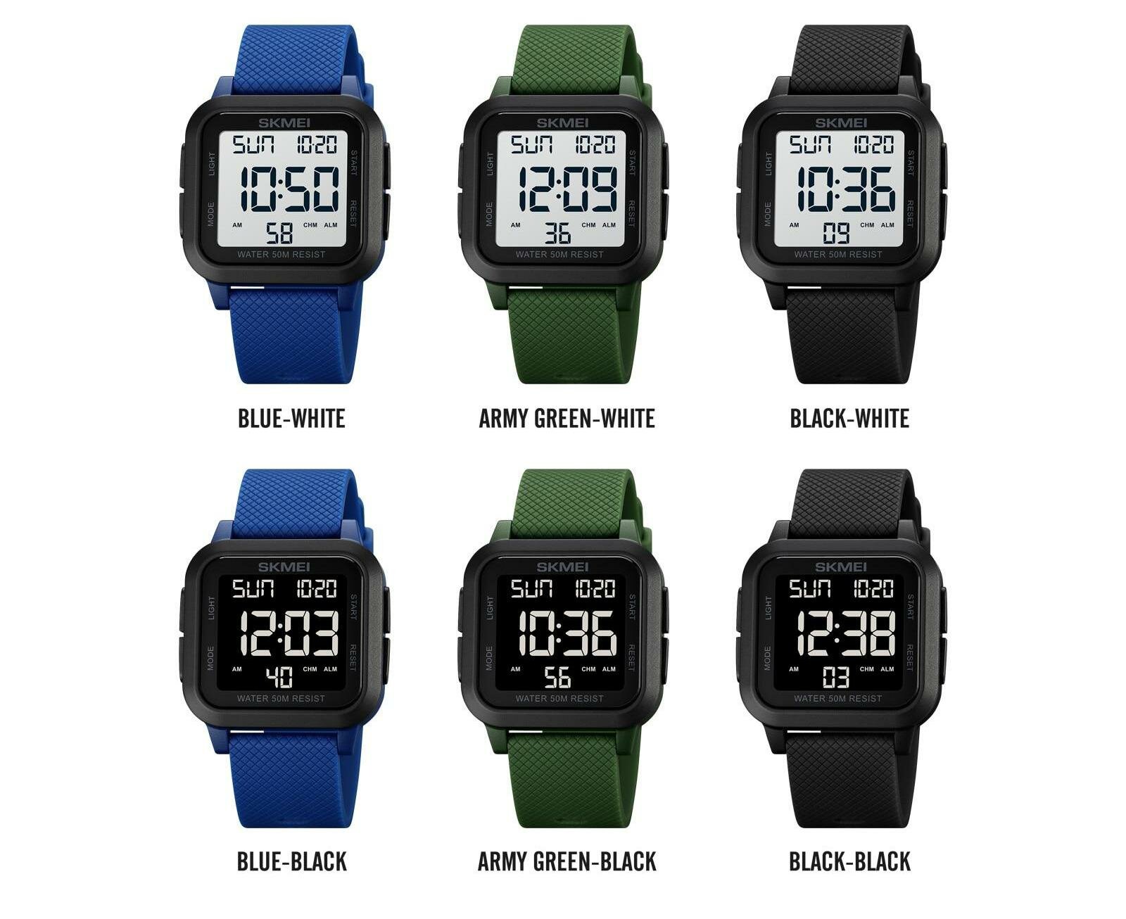 Часы наручные мужские, женские электронные спортивные водонепроницаемые SKMEI 1894 черные/белые квадратные с секундомером и будильником