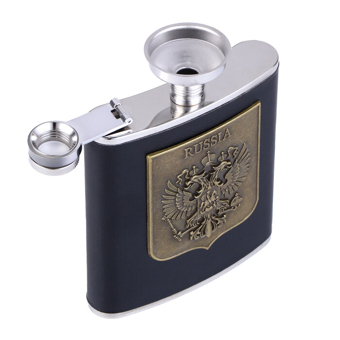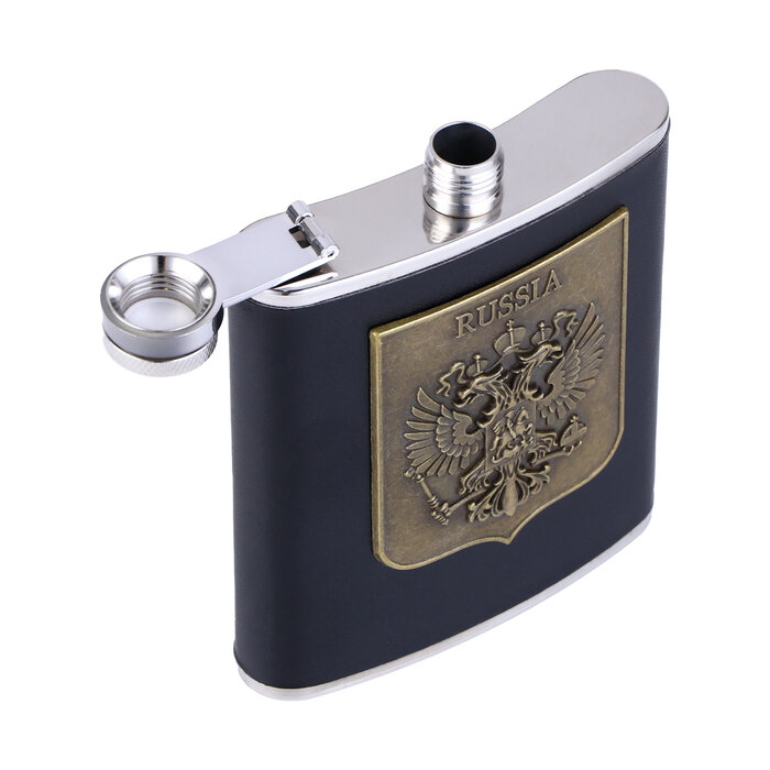 Подарочный набор 4 в 1 «Герб России»: фляжка 210 мл, воронка, 2 рюмки, черный, 17×20 см интересное: