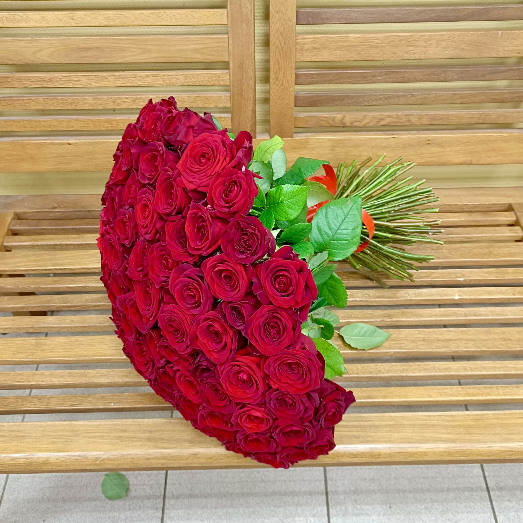 Купить Живые цветы букет роз, сорт "Ред Наоми" 101 шт. 50 см. красный "Страсть"