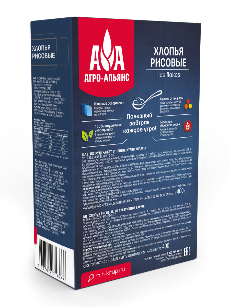 Хлопья рисовые Агро-Альянс 400г интересное: