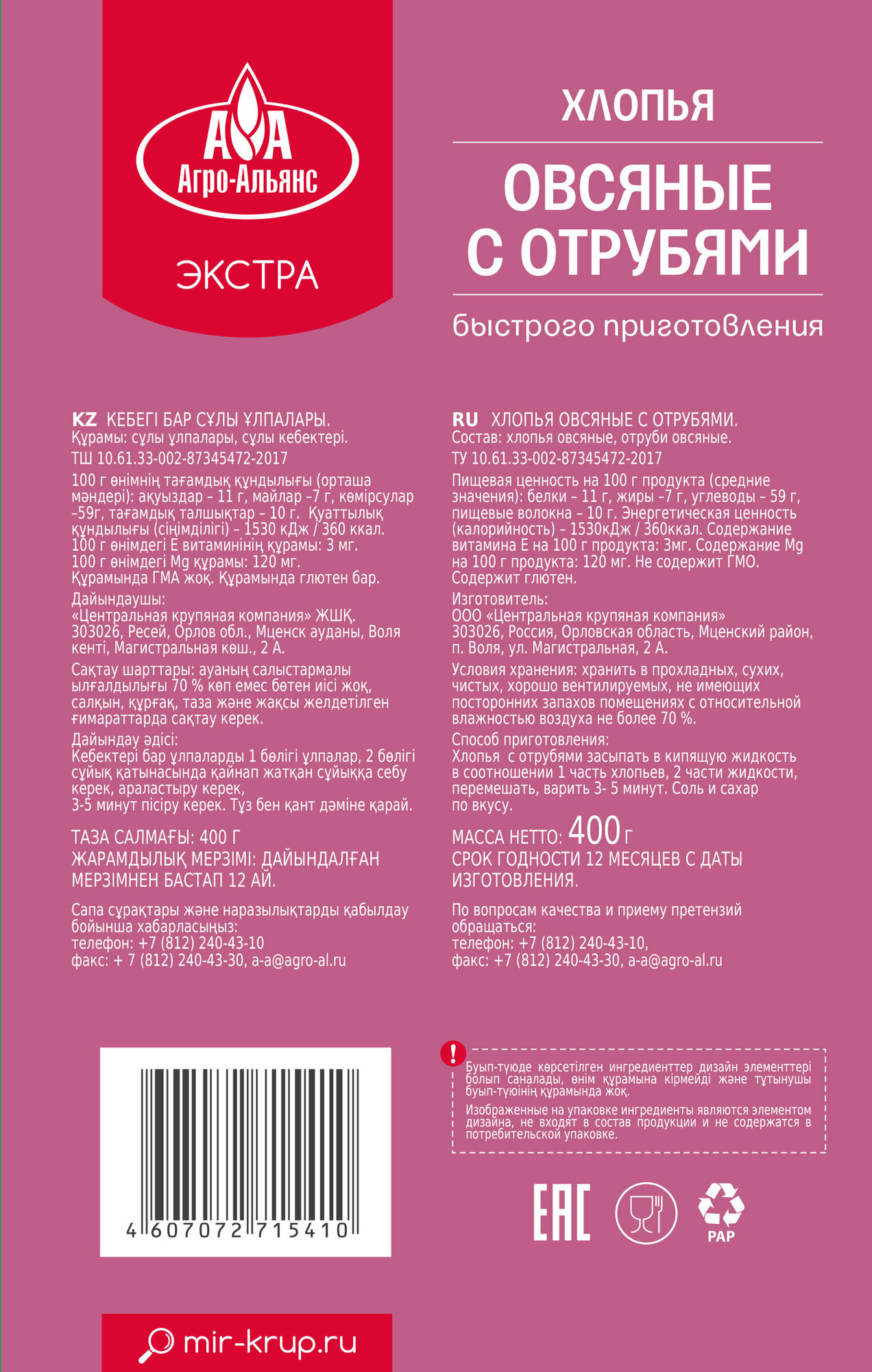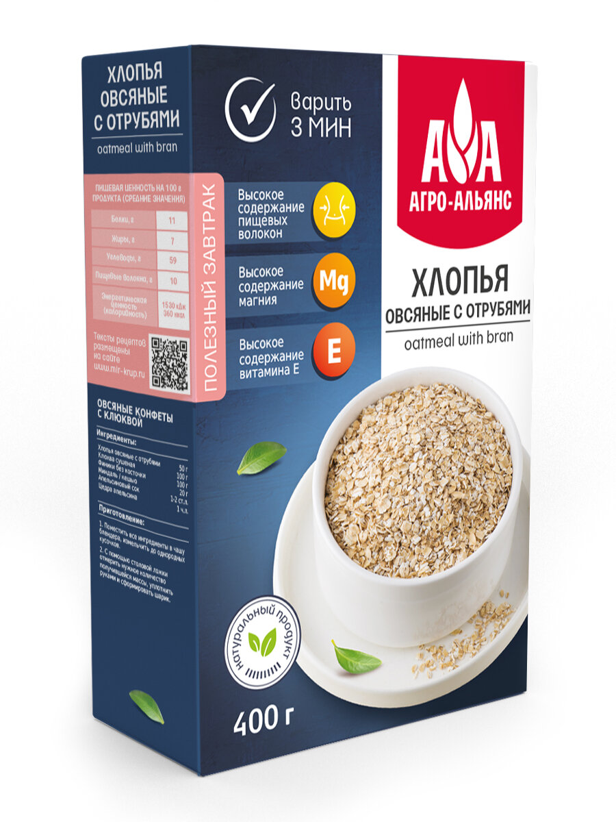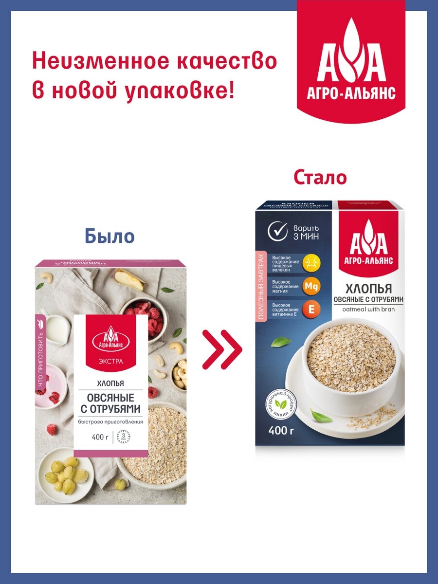 Купить Хлопья овсяные с отрубями Агро-Альянс Экстра, 400 г