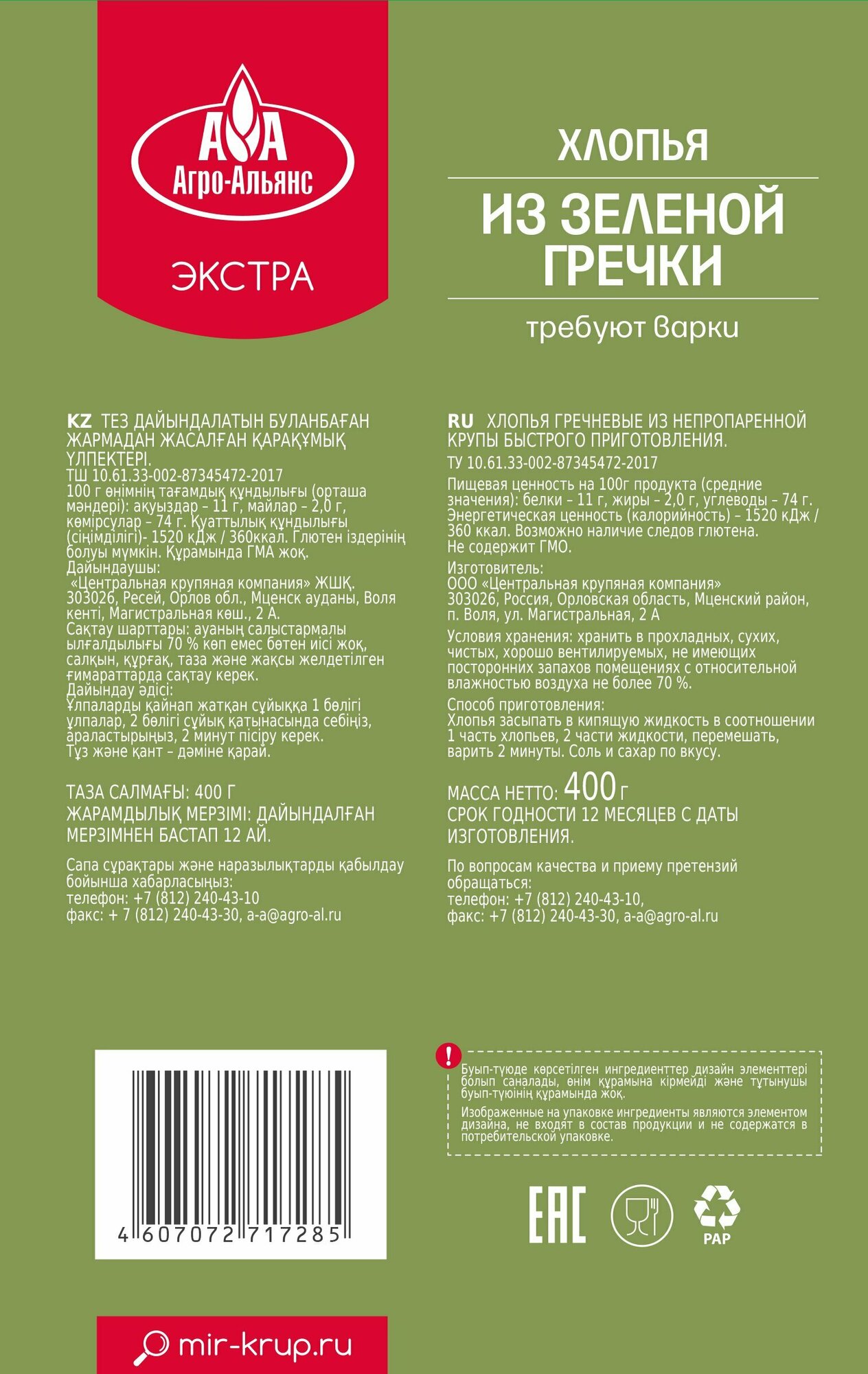 Хлопья из зеленой гречки Агро-Альянс Экстра 400г интересное: