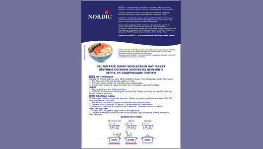 NORDIC Крупные Овсяные Хлопья не содержащие Глютен (12 мин.) 500г
