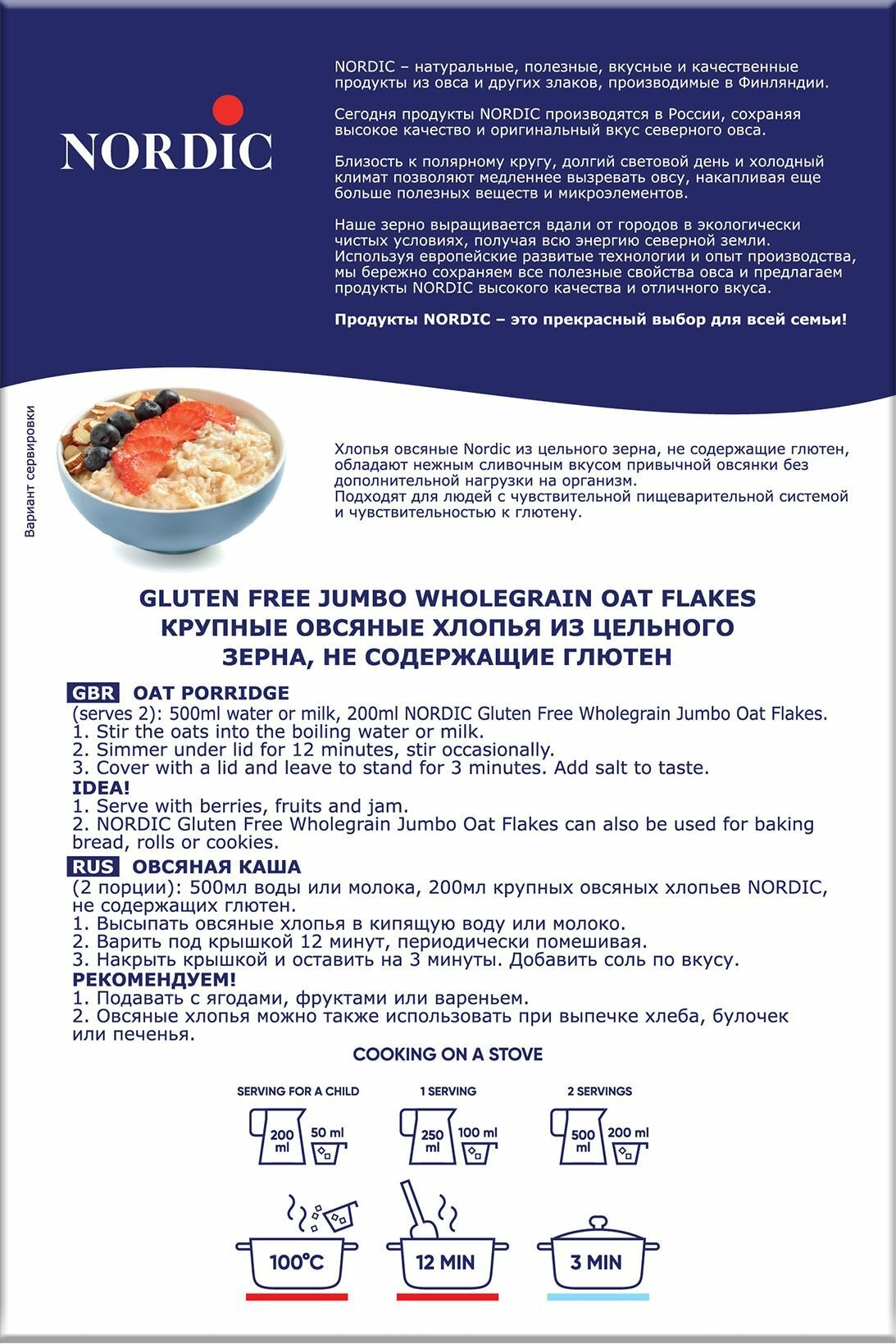 Nordic Хлопья овсяные без глютена крупные 12мин 500г интересное: