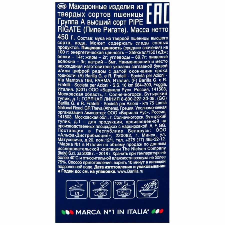 Паста Barilla Пипе Ригате 450г интересное: