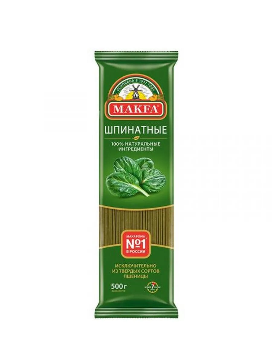 Спагетти Makfa с добавлением натурального шпината, 500 г, 4 шт
