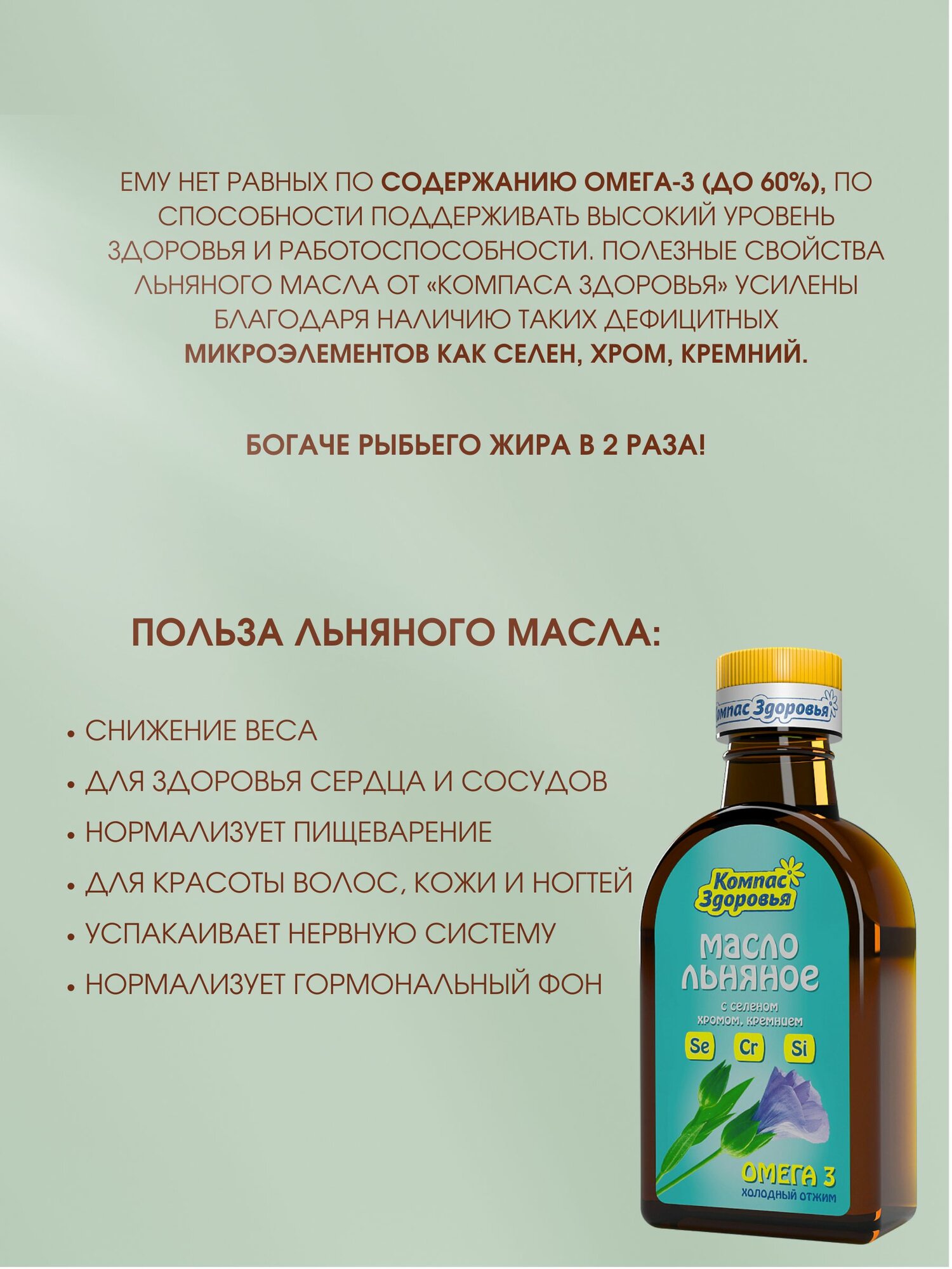 Масло льняное 200 мл с селеном хромом кремнием Компас здоровья