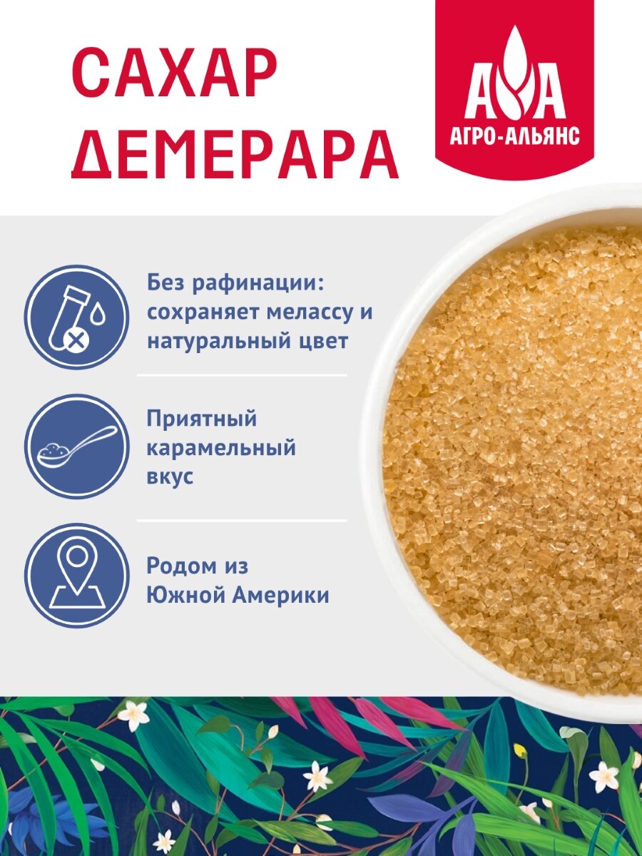 Сахар тростниковый нерафинированный Демерара Агро-Альянс Экстра 900г интересное: