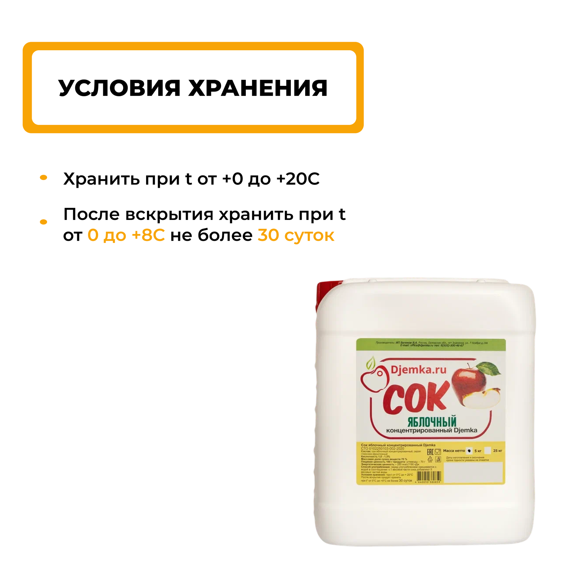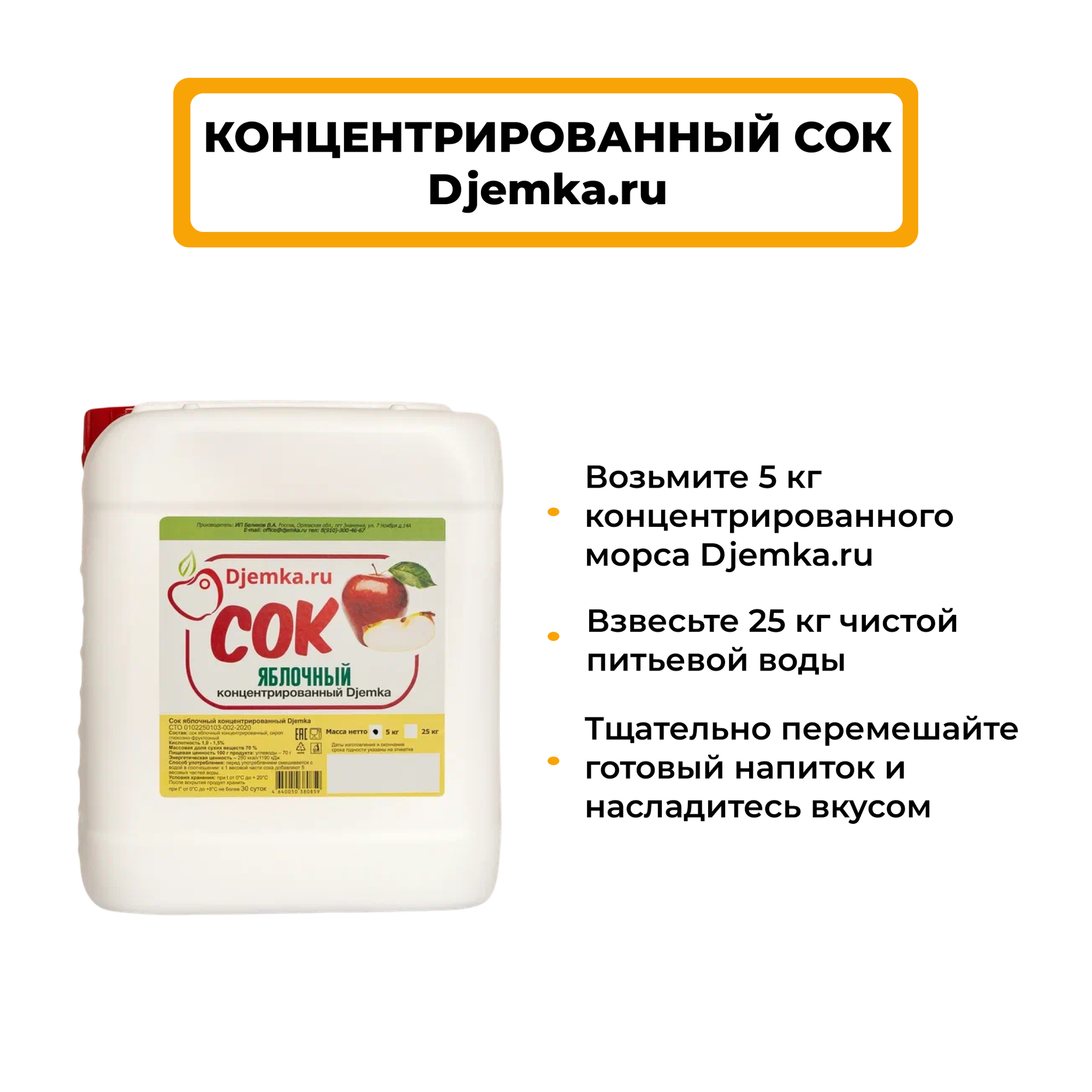 Купить Сок Djemka.ru "Красное яблоко", концентрированный, в пластиковой канистре, 5 кг